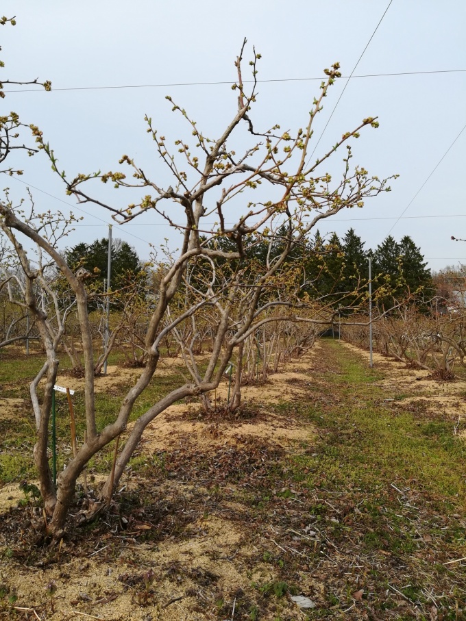 小さなブルーベリーの木も剪定が終わりました。秋田の5月はまだ肌寒い日とポカポカ陽気がいったりきたりです。