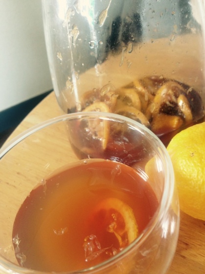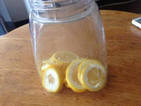 2.きび糖をませて、週間ほどおいておき、レモンから水分が出てきたら完成。
