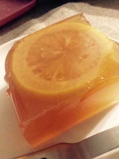 (シロップ漬けのレモンを入れた場合は、切った時にキレイになるように位置を整える)
