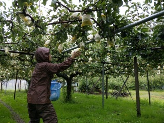そんな中、西洋ナシのルレクチェの収穫作業を行いました。