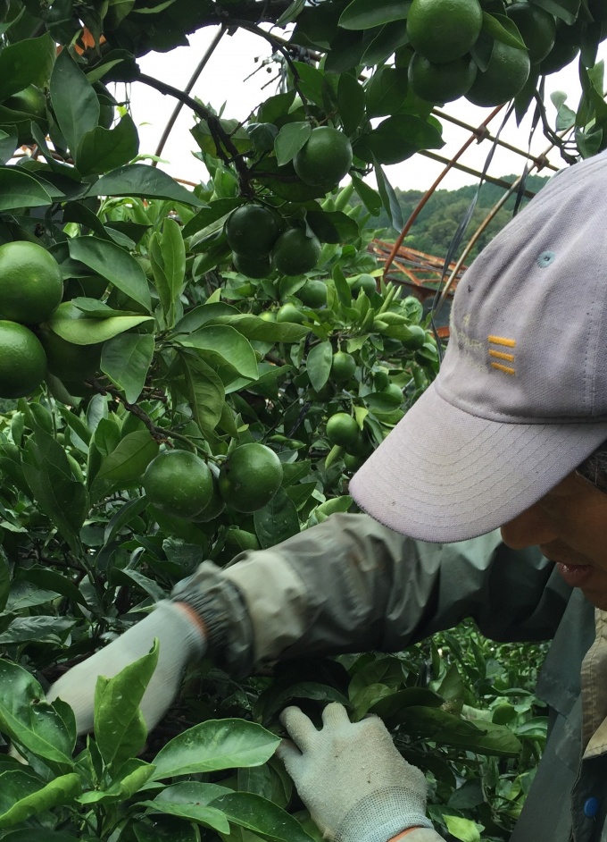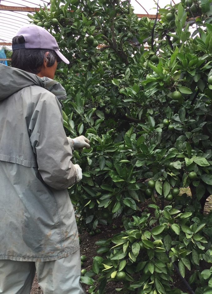 摘果作業も仕上げに、はいってきました。先週から天気が悪く、雨が降ったりやんだり。。☂ なかなか思うようにはなりませんが、ざーざーばーばー降ってるわけではないので、かっぱを着てがんばります!
